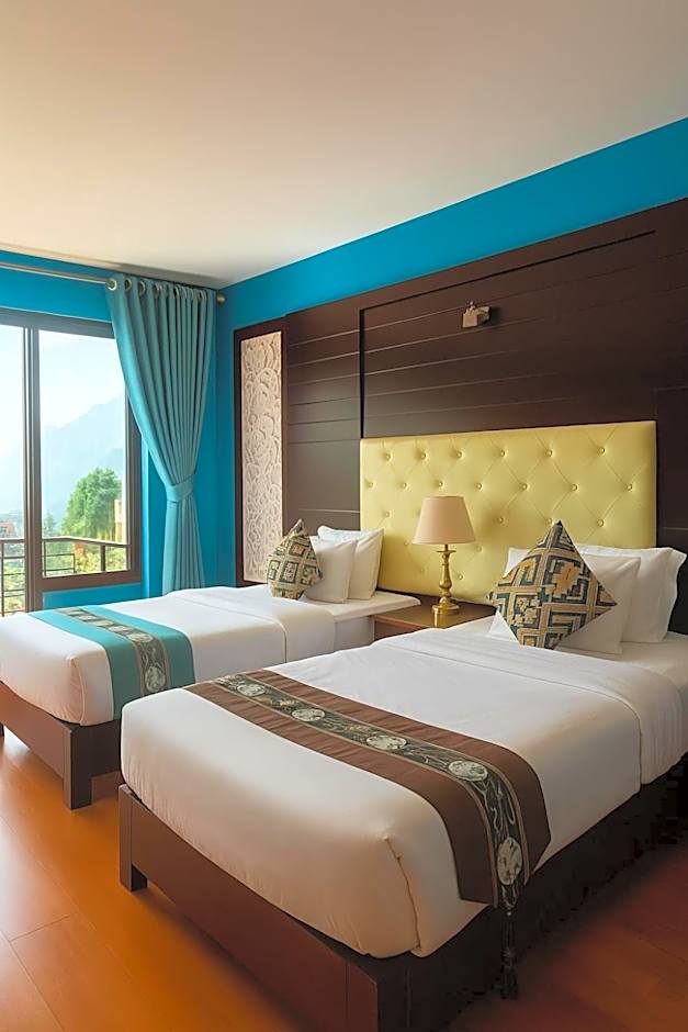 The air-conditioned twin room features a flat-screen TV, a seating area, a wardrobe, a safe deposit box as well as mountain views. The unit has 2 beds.